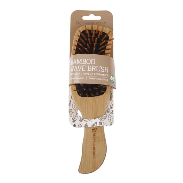 El cepillo para el cabello Bamboo Wave con cerdas de bambú orgánico previene la acumulación de estática, desenreda el cabello y masajea el cuero cabelludo y se puede usar húmedo o seco.