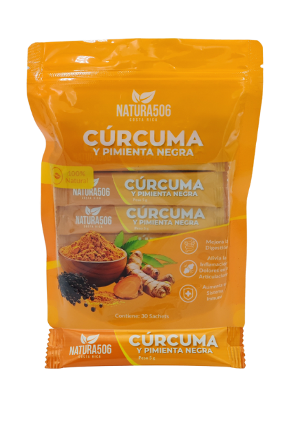 La mezcla de cúrcuma y pimienta molida en presentación de sachet combina dos potentes